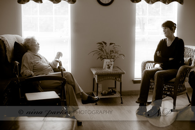 A little relaxation and conversation in the living room between Grandma Parker and Paula.